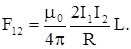 ка длиной L с током I2, равна F12 =BL I2, или, подставляя в эту формулу явное выражение для В, имеем: