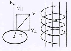 . Сила Лоренца максимальна, когда скорость отдельного заряда перпендикулярна вектору В,и равна нулю, когда заряд движется параллельно силовым линиям магнит-ного поля. В первом случае заряд вращается по окруж-ности, радиус которой определяется законом Ньютона: