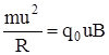 Рис.26. Действие силы Лоренца на движущийся заряд. | как сила Лоренца, равна FЛ =q0uBsina. Учитывая, что скорость направленного движения заря-дов в проводнике – u –вектор, и что направление силы определяется по правилу правого винта, можно опреде-лить силу Лоренца как . Сила Лоренца максимальна, когда скорость отдельного заряда перпендикулярна вектору В,и равна нулю, когда заряд движется параллельно силовым линиям магнит-ного поля. В первом случае заряд вращается по окруж-ности, радиус которой определяется законом Ньютона: |