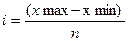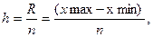 где x max, x min – максимальное и минимальное значения признака в совокупности; n – число групп.