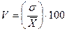 Группировка с произвольными интервалами может быть построена с помощью коэффициента вариации (V) по формуле: