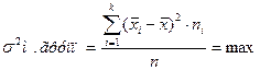 Критерием оптимальности выполненной типологической группировки может служить максимум межгрупповой дисперсии интересующего исследователя признака.
