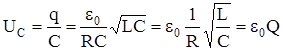 Рассмотрим последовательную цепь, содержащую катушку индуктивности L, ем-кость С, сопротивление R и ключ. Предположим, что на емкости в начальный момент вре-мени имеется некоторый заряд. Если цепь замыкается, то в цепи возникает электрический ток. Наличие катушки индуктивности обуславливает возникновение ЭДС самоиндукции, которая своим действием препятствует возрастанию разрядного тока конденсатора. В тот момент, когда напряжение на конденсаторе становится равным нулю, ток через индуктив-ность достигает максимума. В дальнейшем ЭДС самоиндукции стремится поддержать этот ток, что приводит к перезарядке конденсатора до некоторого напряжения обратной поляр-ности. Процесс перезарядки конденсатора повторяется определенное число раз в зави-симости от величины потерь энергии на сопротивлении. Способность контура к переза-рядке характеризуется качеством контура или добротностью. Добротность контура Q опре-деляется отношением энергии, запасенной на конденсаторе или в катушке индуктивности, к величине потерь энергии на сопротивлении за период: