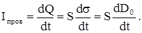 Обратимся к рассмотрению «волшебного тока» внутри пластин конденсатора. Мы знаем, что ток I пров =dQ/dt. На конденсаторе Q = Ss (s - плотность поверхностных зарядов, а S – площадь пластин конденсатора). Напряженность электрического поля внутри конден-сатора равна E = s/e0 или D0 = s, где D0 = e0 E – вектор электрического смещения. С учетом этого запишем