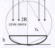 где m – номер наблюдаеиого кольца. Пренебрегая малой величиной h2 по сравнению с ра-диусом линзы R,находим