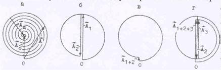 Для оценки вкладов от каждой зоны в суммарную освещенность используем метод векторных диаграмм. Для этого разобьем каждую зону на ряд узких «подзон» так, что каж-дая подзона отличается от соседней лишь небольшим сдигом по фазе. Колебания каждой из «подзон» будем представлять в виде вектора, длина которого определяется амплитудой ко-