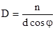 Угловая дисперсия D определяет угловое расстояние между волнами, длина которых отличается на единицу (длины).Выражение для определения D можно получить, дифферен-цируя условия главных максимумов: dcosj =lnd. Отсюда D определяется как