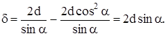 заметить, что разность хода между интерферирующими лучами d =AD +DC – BC. Из DADF AD = FD/sina; AF = dtga, а из DАВС ВС = 2AFcosa. С учетом того, что AD = DC, имеем:
