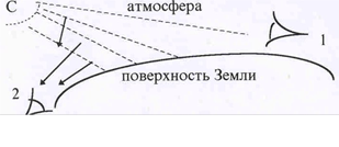 ческих расположении источника и наблюдателя. Так в глаз наблюдателя 1 (см.рис.) прихо-дит прямой луч, тогда как наблюдатель 2 видит, в основном, рассеянные лучи.