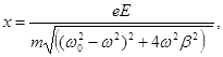 где b характеризует затухание колебаний, а w0 может рассматриваться как собственная частота колебаний электрона в атоме.Для упрощения математических выкладок будем пренебрегать затуханием,т.е положим b = 0.Тогда величина поляризации равна: