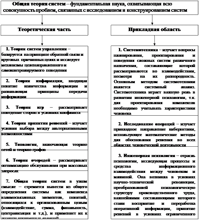 Общая теория систем или системный анализ, как отрасль науки, может быть разделен на две части: теоретическую и прикладную.