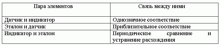 Рассмотрим систему "синхронизируемые часы". Считаем, что в состав такой системы входят три элемента: датчик, индикатор и эталон времени. Структура часов определяется следующими отношениями между парами элементов: