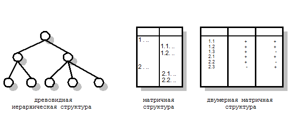 Матричные структуры представляют взаимоотношения между уровнями иерархической структуры. Они могут быть описаны в виде: