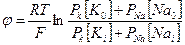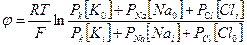 но в том же состоянии распределение Cl- близко к равновесному, т.е. потоки Cl- из клетки и внутрь ее одинаковы и в этом случае условие нулевого тока упрощается до: