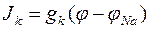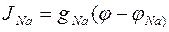 Ток фиксации J, возникающий в ответ на скачок деполяризации состоит таким образом из Na+ и К+ токов (JNa и JK) и зависит от мембранного потенциала. Эквивалентная схема, используемая при интерпретации данных в опытах по фиксации потенциалов предполагает, что токи, текущие по Na+ и К+ каналам подчиняются уравнениям: