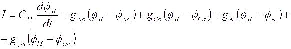 Основываясь на существование трех типов каналов в кардиомиоците можно получить уравнение для мембранного тока при возбуждении
