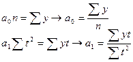 В обоих случаях ∑t = 0, тогда система нормальных уравнений примет вид