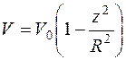 где R - радиус трубы, Z - расстояние от оси, V0 - осевая (максимальная) скорость течения.