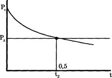 Начальное условие: при t = 0 (соответствует закрытию клип» на) считаем давление Р = Р^. (В данной модели не учитываем различие давлений в т. 2 и 3, считая давление в т. 3 равным систолическому). В результате получаем закон изменения давления в крупных сосудах с момента закрытия аортального клапана