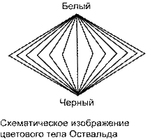 Равновеликие координаты обозначают в каждом случае равную долю абсолютного, черного или белого цвета. Внутри однотонального цветового треугольника Оствальд различал: