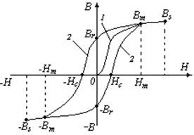 Если образец магнитного материала намагничивать, непрерывно повы- шая напряженность магнитного поля Н, магнитная индукция В тоже будет монотонно возрастать по кривой начального намагничивания. Эта кривая за- канчмвается в точке, соответствующей индукции насыщения ВS. При умень-шении напряженности Н магнитная индукция будет также уменьшаться, но начиная с величины Вm, значения индукции не будут совпадать со значения-ми этой характеристики на начальной кривой намагничивания.