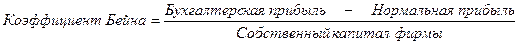 Коэффициент Бейна показывает экономическую прибыль на один доллар собственного инвестированного капитала. Определяется следующим образом: