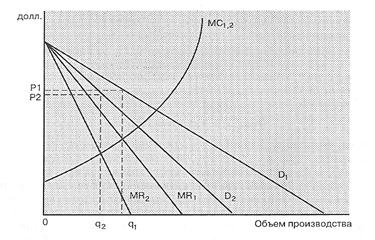 Этот вывод сохраняется и тогда, когда предельные издержки повышаются по мере роста объема производства. В этом случае фирма с большей долей продаж предпочитает и более высокую цену, поскольку при значительном объеме производства предельные издержки затрудняют дальнейшее расширение производства в большей степени, чем при меньшем объеме производства. В общем плане для фирм с одинаковой функцией предельных издержек существуют три случая: