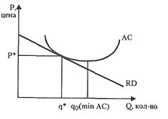 Долгосрочное равновесие устанавливается, когда фирма на рынке монополистической конкуренции получает лишь нулевую экономическую (нормальную) прибыль. Цена на товар фирмы равна средним издержкам. Производственная функция фирмы имеет положительную отдачу от масштаба, средние издержки превышают минимально возможное значение рис. 7.1.