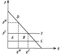 - с) и передастся площадью А + В на рис. 9.1. Поскольку изначально прибыль была равна нулю, мы приходим к выводу, что А + В есть прибыль от нововведения (вследствие сокращения издержек) и она больше, чем монопольная.