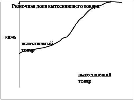 Рис. 2.5. Замещающая S-кривая гипотетического рынка товара с заданным функциональным назначением.