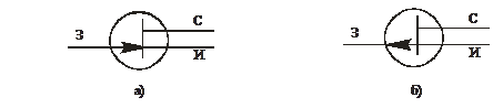 с р-n-переходом и каналом n- типа (а), каналом р- типа (б)