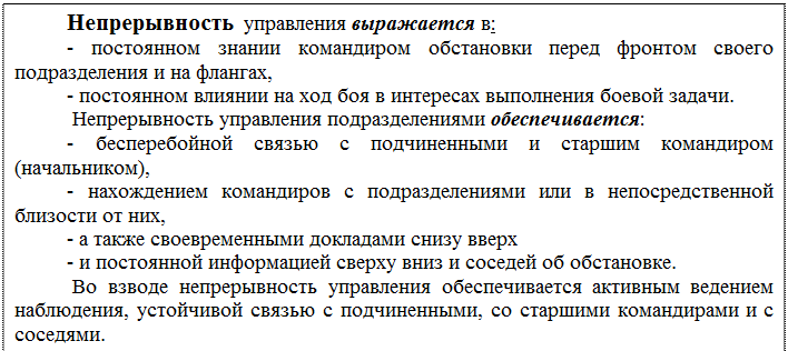 Высокоманевренный характер общевойскового боя, непрерывное повышение технической оснащенности войск, повлекшие за собой увеличение объема задач, решаемых командиром, как в период организации, так и в ходе боя, оказывают существенное влияние на условия, содержание и методы управления подразделениями.