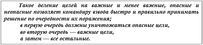 - сосредоточении огня взвода (отделения) по одной важной цели,