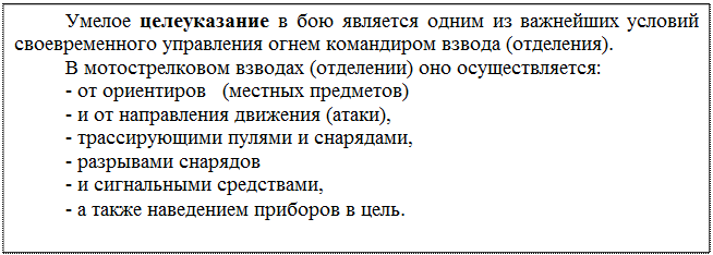 Целеуказаниемежду боевыми машинами пехоты и танками, а также между взводами (отделениями, танками) осуществляется главным образом от ориентиров (местных предметов) трассирующими пулями и снарядами.