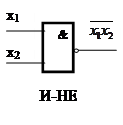 Логические элементы И-НЕ и ИЛИ-НЕ. Последовательное соединение элементов И и НЕ реализует функцию отрицания конъюнкции (рис.2.8). Логический элемент, реализующий эту функцию, называется И-НЕ. Обозначение этого элемента приведено на рис.2.12.