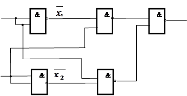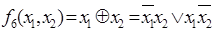 Пример 2.2. Построить схему сумматора по модулю два на элементах И, ИЛИ, НЕ. Таблица истинности для ПФ f6(x1,x2) логической неравнозначности представлена в табл.1.3.