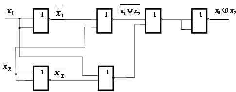 Рис.2.14. Схема сумматора по модулю два на элементах ИЛИ-НЕ