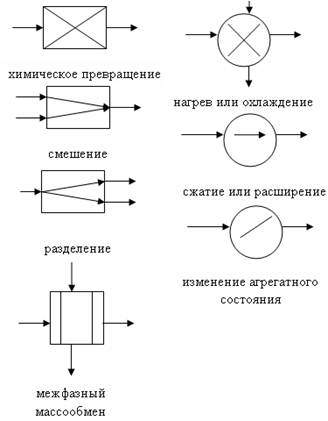 Операторная схема дает наглядное представление о физико-химической сущности технологических процессов системы, создается на промежуточном этапе проектирования. Для этого каждый элемент ХТС изображают в виде определенного типового технологического оператора. Каждый оператор имеет свое графическое изображение.