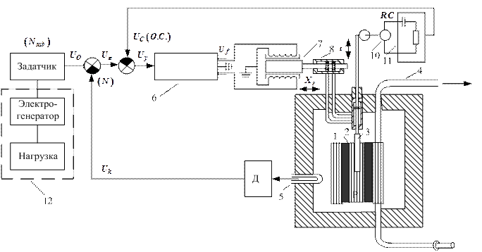- цепь (корректирующая цепь 10+11); 12 – задачник мощности (при поддержании постоянства мощности в качестве задачника может служить сам генератор электрического напряжения).