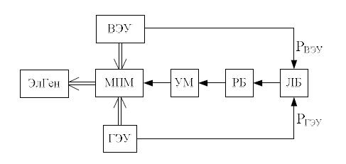 На рис.4 приведена функциональная схема ГЭУ. Полученная схема будет рассмотрена при совместной работе с ВЭУ в составе ВГЭУ.