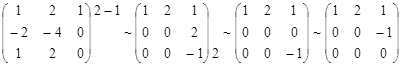 Ранг расширенной матрицы равен двум, а основной единице. Система несовместна, прямые параллельны, т.к. направляющие векторы