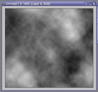 Далее создаём новый слой с белым фоном Shift+Ctrl+N. К этому слою применяем фильтр Filter>Render>Clouds.