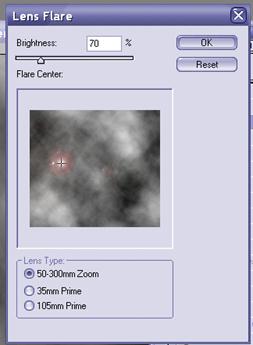 Применяем следующий фильт Filter>Render>Lens Flare с параметрами: