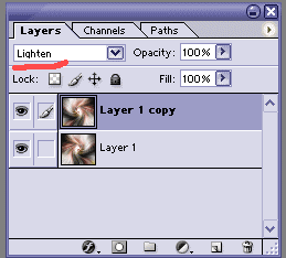 Установите режим смешивания слоя Layer 1 copy на Lighten.