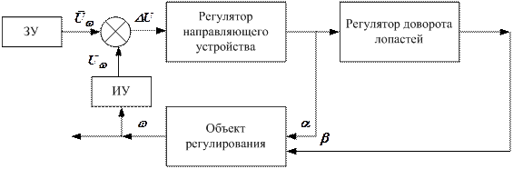 САР скорости вращения гидротурбины (САР СВГТ) состоит из объекта регулирования и двух взаимосвязанных автоматических регуляторов (рис. 2).