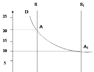 Рисунок 4 - Спрос (D) и предложение на рынке капитала в краткосрочном (S) и долгосрочном (S1) периодах