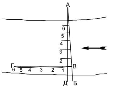 Рис. 8. Разбивка гидрометрического створа с учетом направления течения