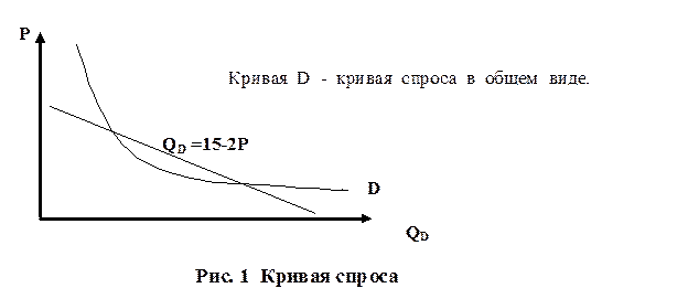 QD = a - bP, где QD - объем спроса, a, b - математические параметры, Р - цена.