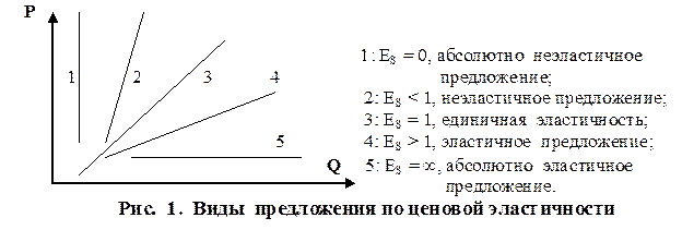 2. Принято различать следующие случаи ценовой эластичности предложения: