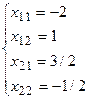 x11= -2; x12= 1; x21= 3/2; x22= -1/2